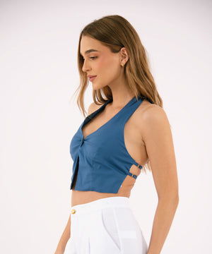 Blusa De Anudar En El Cuello AZUL PROFUNDO