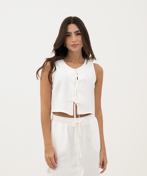 Blusa sisa con lazo en frente BLANCO