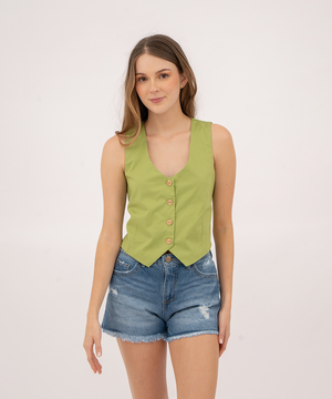 Chaleco con escote posterior y moño, botones funcionales en delantero
