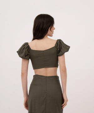 Crop top manga volumen VERDE SELVA (MILITAR)
