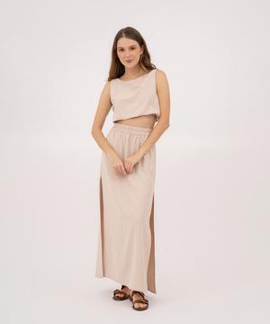 Falda larga con aberturas BEIGE