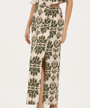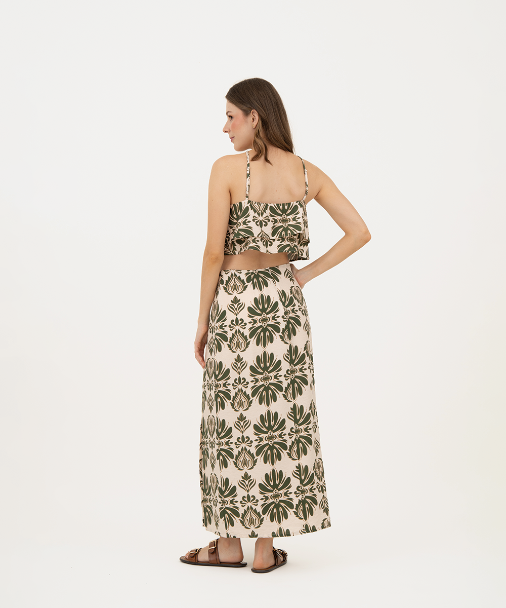 Falda midi con abertura VERDE SELVA (MILITAR)