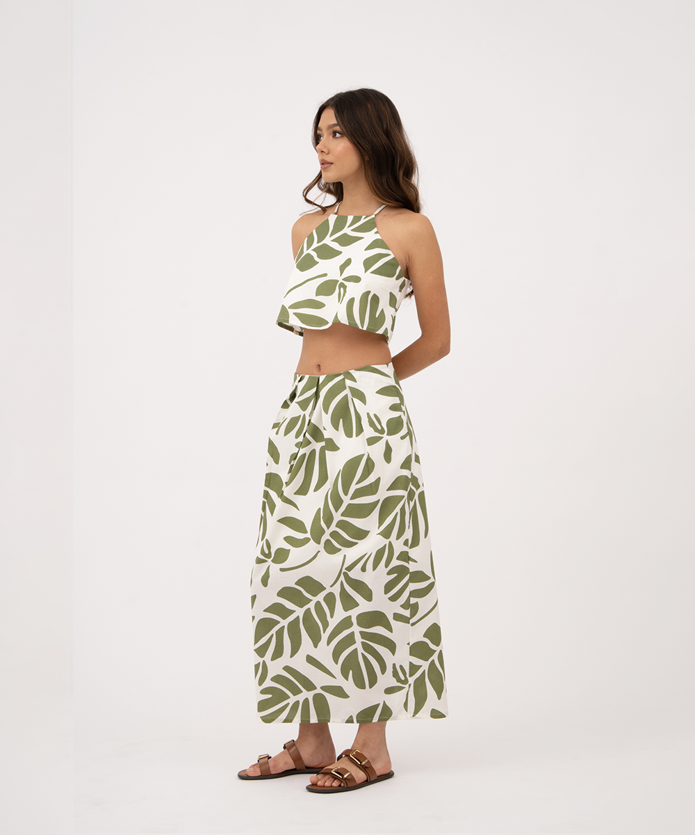 Falda midi con prenses VERDE