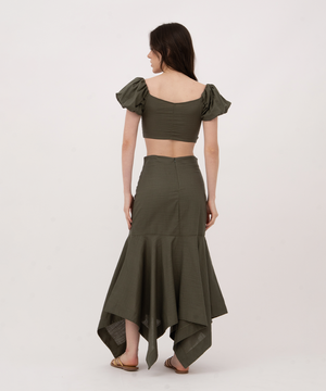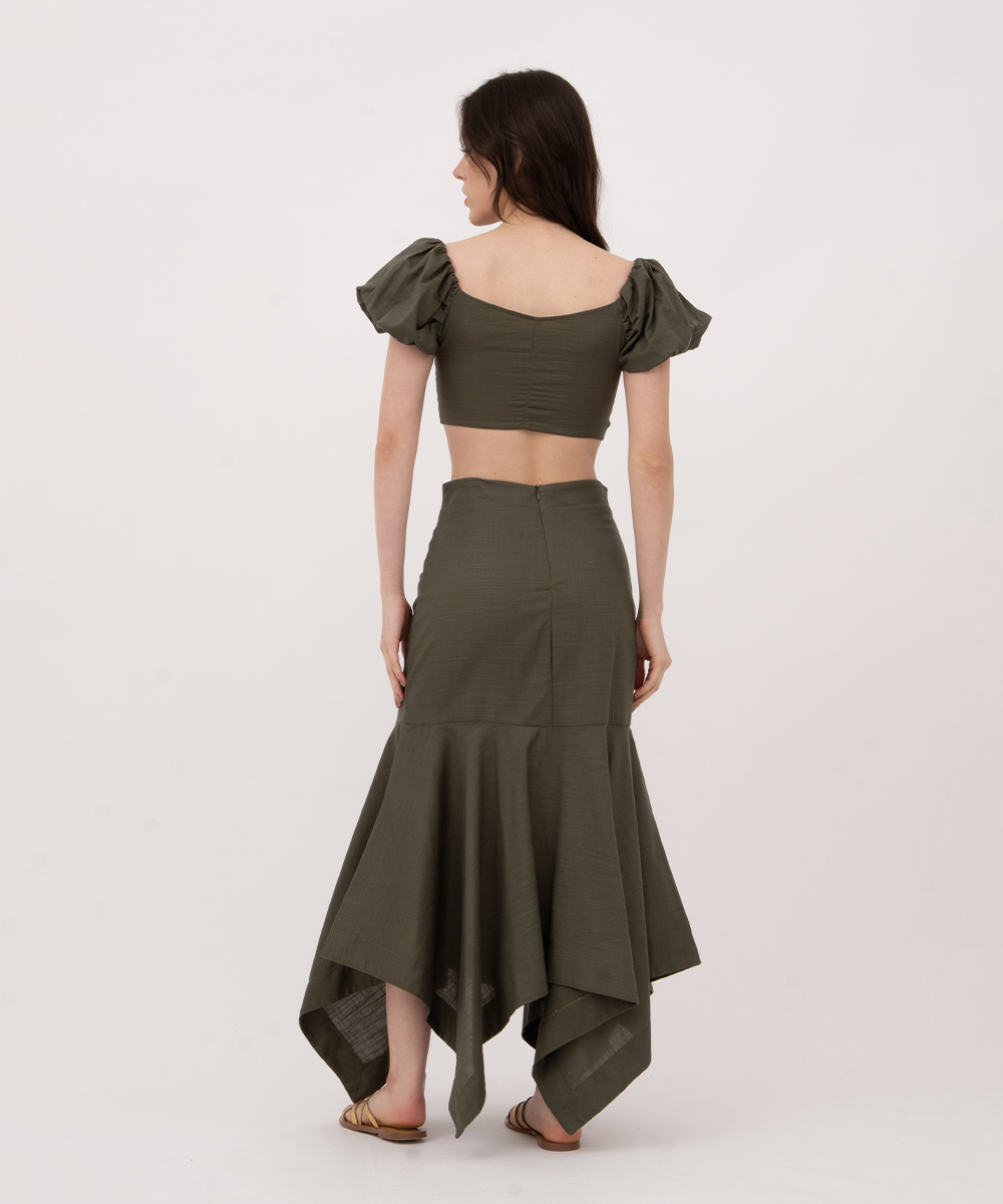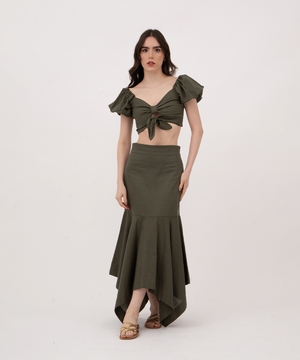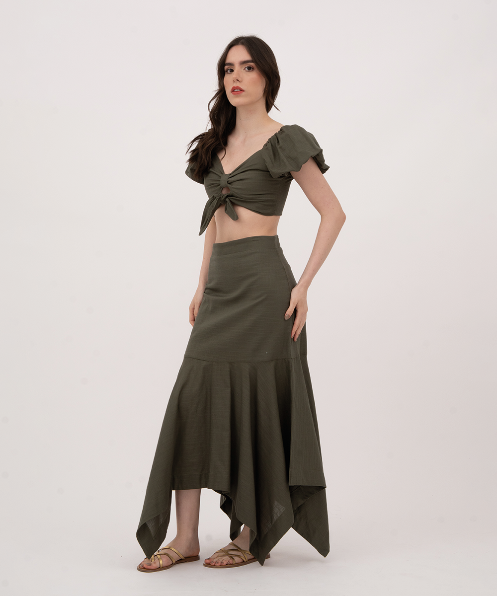 Falda midi con puntas VERDE SELVA (MILITAR)