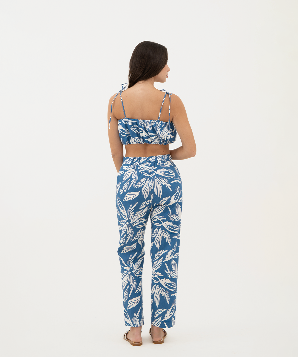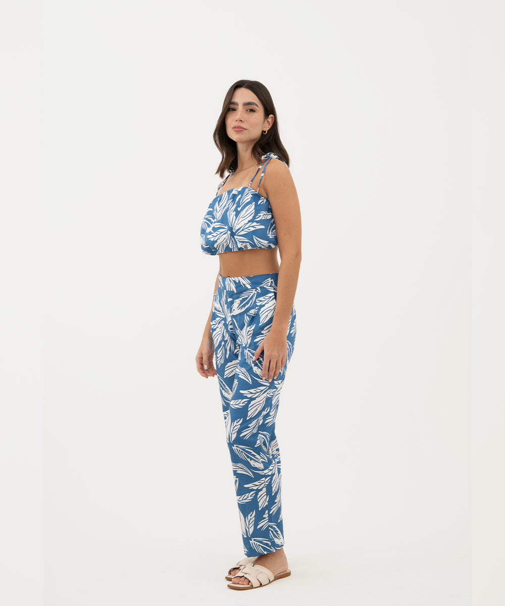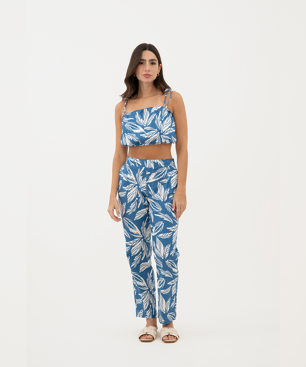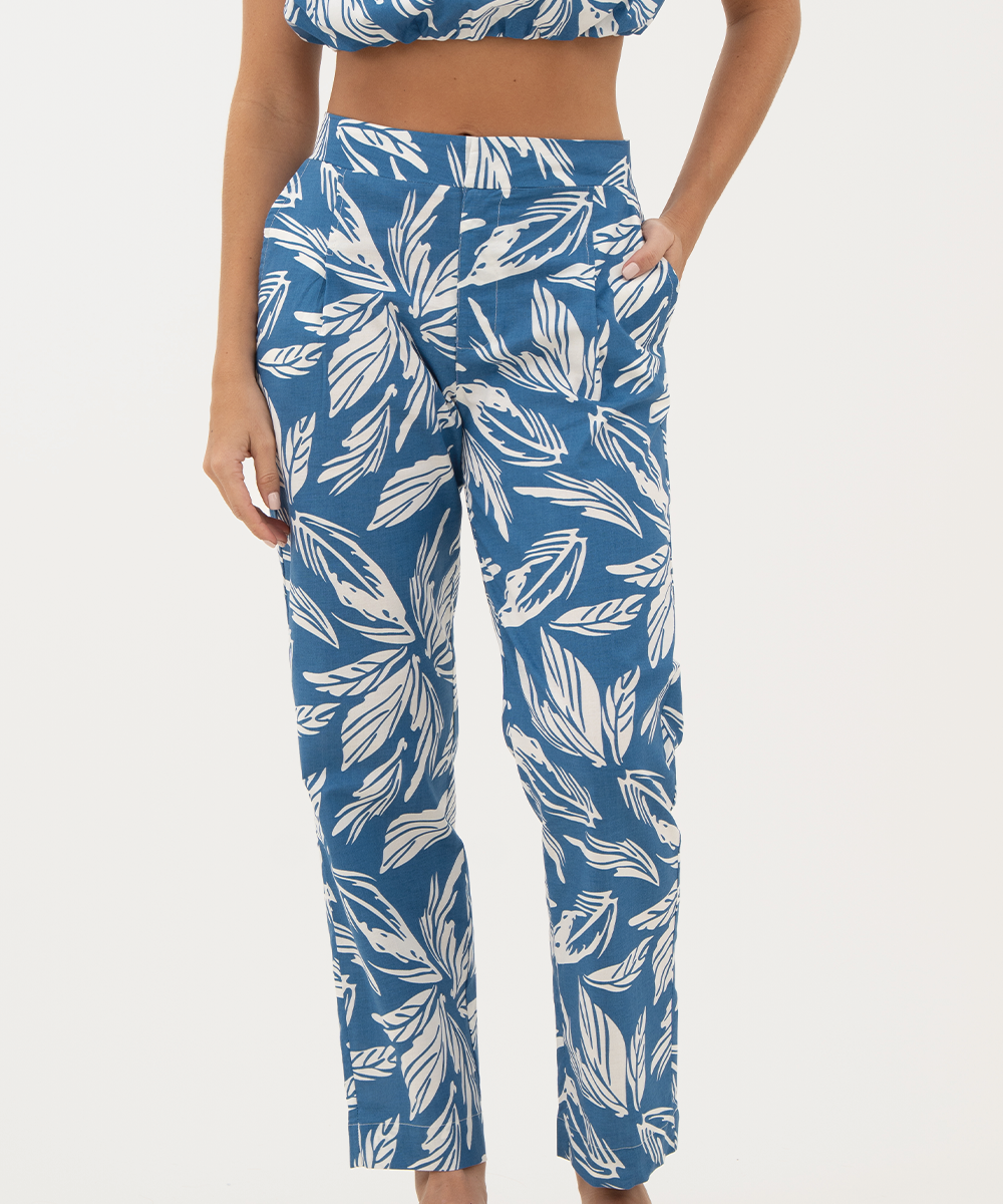 Pantalón clásico, bolsillos laterales, pretina con corte y elástico posterior, cierre frontal.
