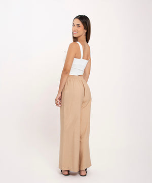 Pantalón silueta amplia con cintura elástica y bolsillo parche
