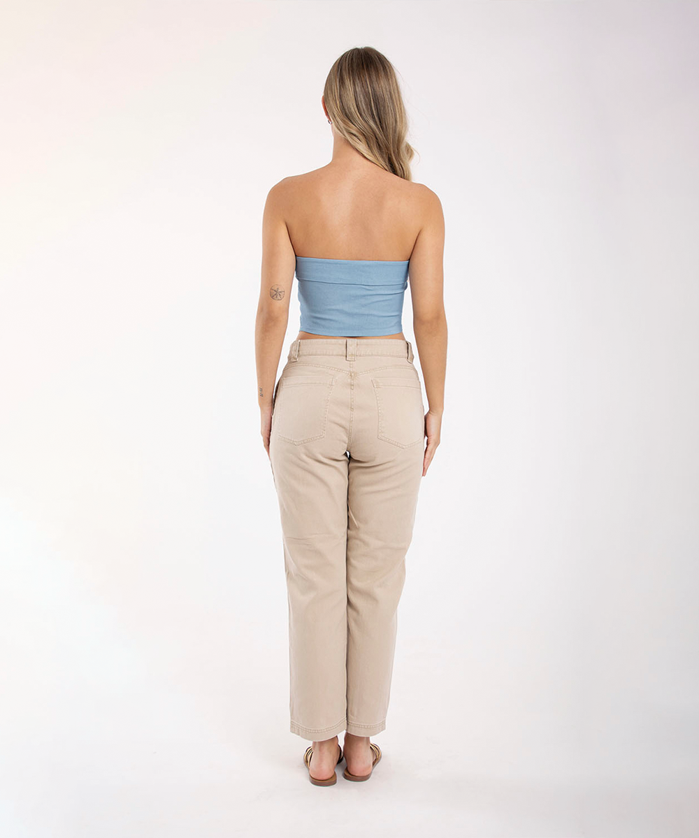 Pantalón tiro medio 5 bolsillos, cierre frente con cortes en el delantero y bota justa