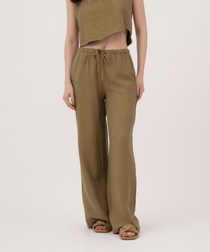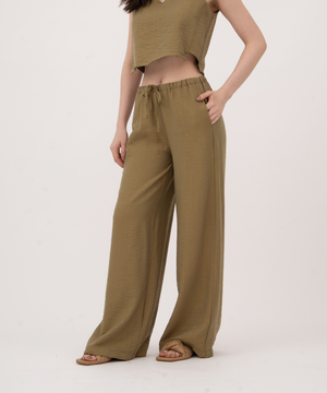 Pantalón con elástico en cintura y tira de amarrar en la cintura, bolsillos laterales.
